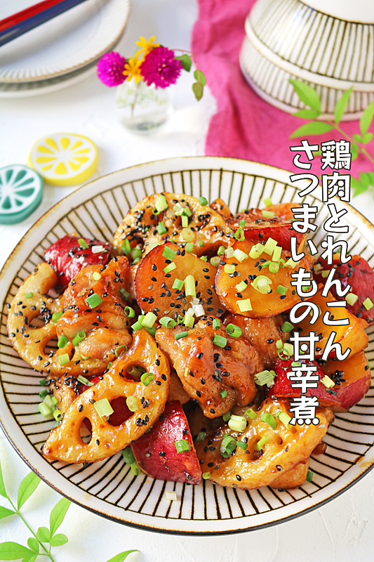 鶏肉とれんこんさつまいもの甘辛炒め!秋のお弁当おかず