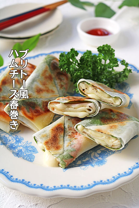 揚げずに簡単!パリもちっブリトー風ハムチーズ春巻き♪連載