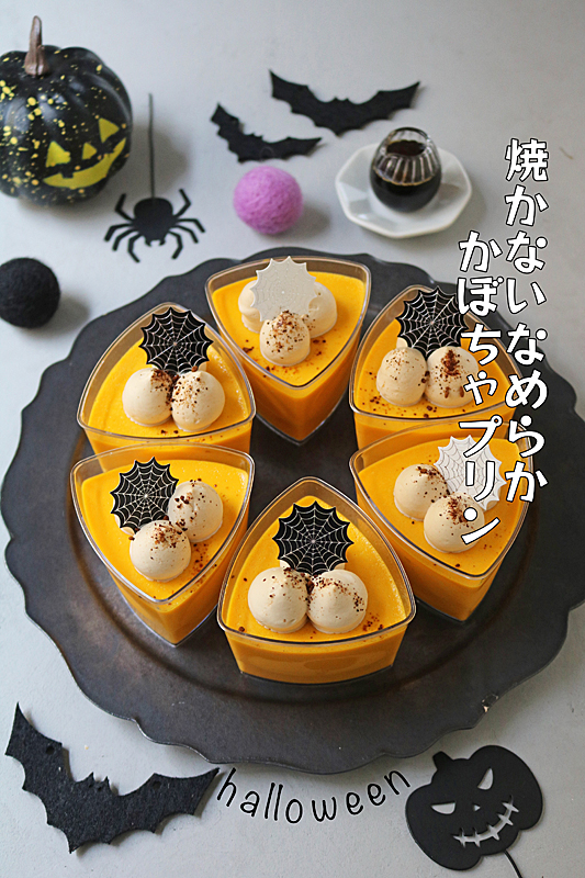 焼かずに簡単!ハロウィンなめらかコーヒーかぼちゃプリン!