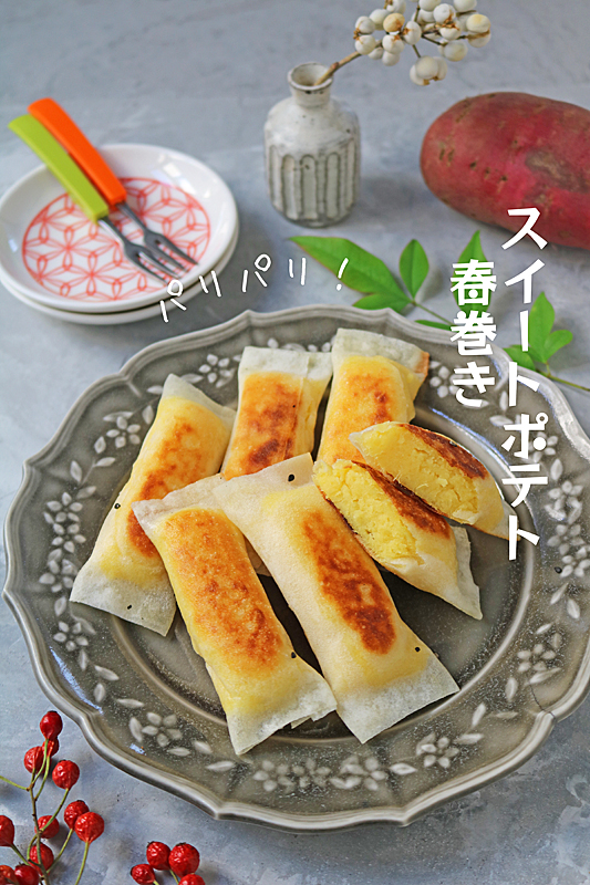 余った春巻きの皮で♪揚げずに簡単!パリパリスイートポテト春巻き