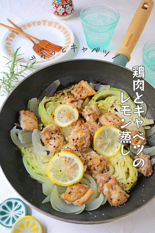 ワンパンで簡単ヘルシー!ごろっとキャベツと鶏肉のにんにく塩レモン蒸し