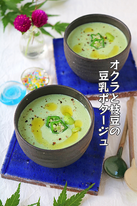とろ~りオクラと枝豆の簡単ヘルシー豆乳ポタージュ!夏にピッタリ冷製スープ
