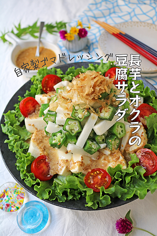 万能自家製ごまドレッシングでオクラと長芋の豆腐サラダ!連載