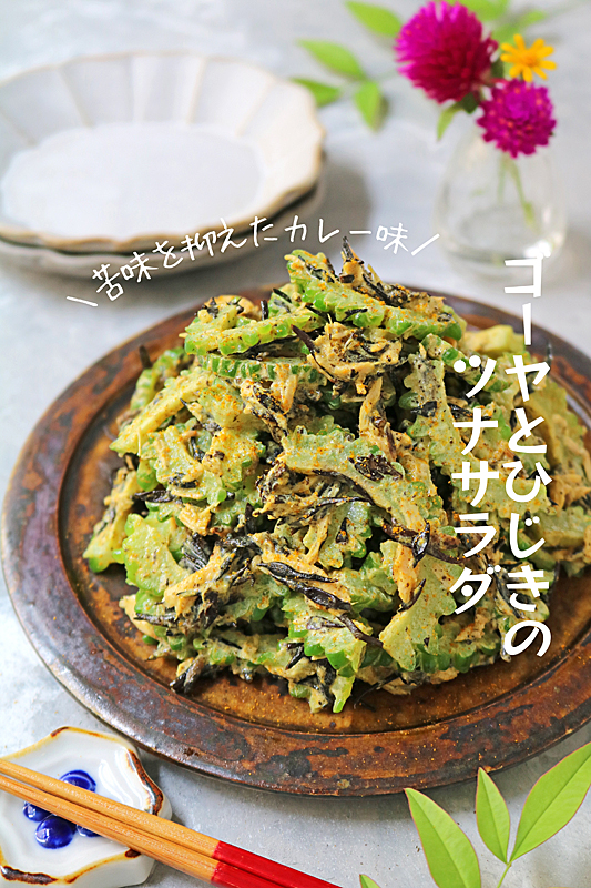 ゴーヤが苦くない!シャキシャキゴーヤとひじきのカレーツナサラダ
