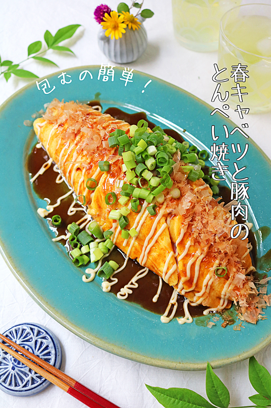 包むの簡単!レンジで時短!春キャベツと豚肉のとんぺい焼き!